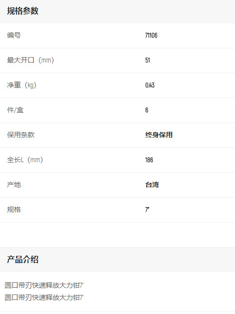 產(chǎn)品名字:世達(dá)圓頭帶刃快速釋放大力鉗7寸