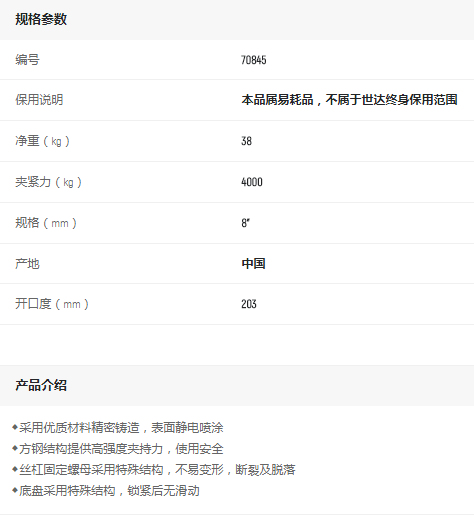 首頁(yè)>產(chǎn)品中心>鉗、夾類工具>臺(tái)虎鉗>世達(dá)重型方鋼臺(tái)虎鉗8寸