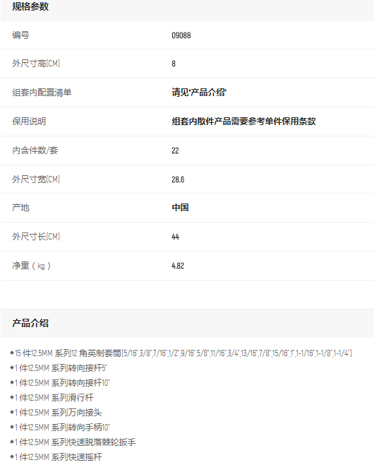 產(chǎn)品名字:世達22件套12.5MM系列英制組套
