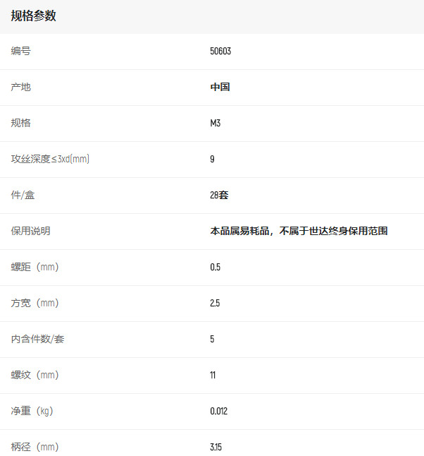 首頁>產(chǎn)品中心>螺紋刀具>其他螺紋刀具>世達(dá)5件套粗牙機(jī)用絲錐M3*0.5mm